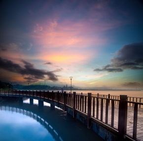 Вид красивого заката с моста art 137328200
